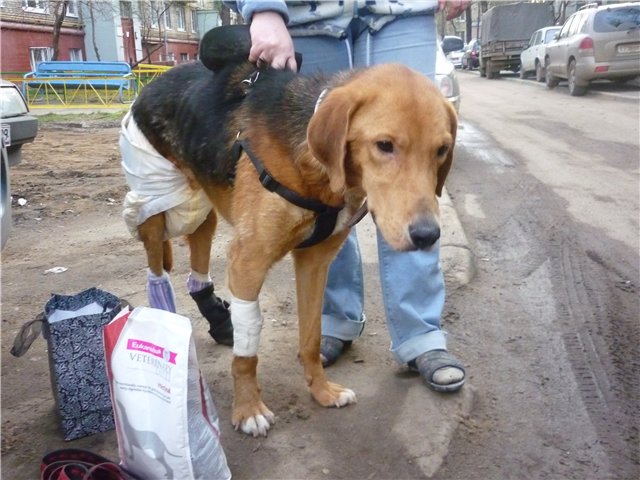а во всем остальном, красивый жизнерадостный пес, ходит, нет он бегает, даже носится))) аппетит у нас хороший, не только свое съедим, еще и отобрать пытаемся, как лапу ставит мне нравится, немного напрягает что кровит, но швы не воспаленные, это радует. и какает колбаской(простите за подробности), что тоже радует