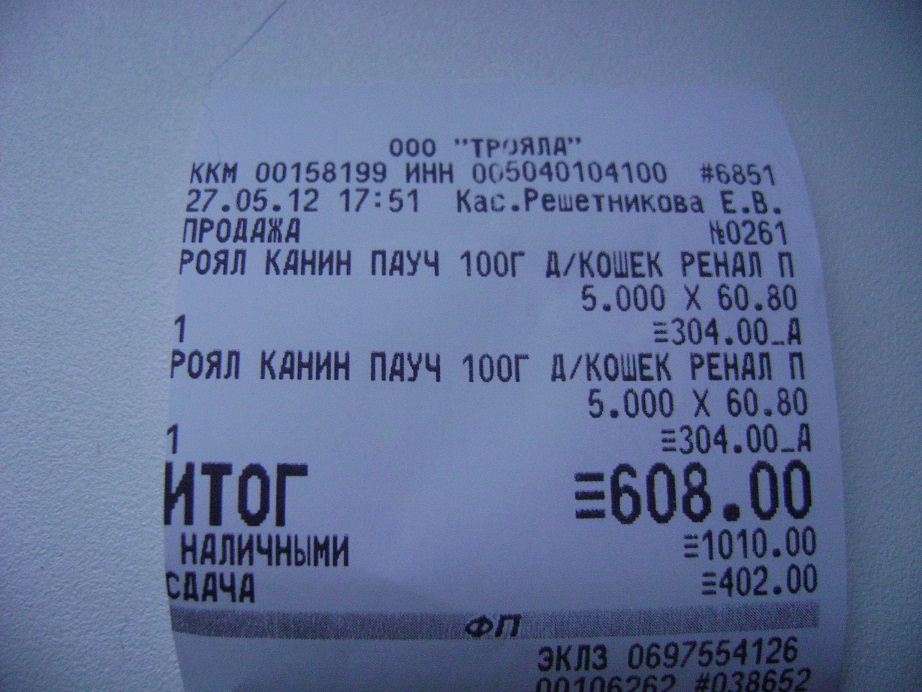 Чек за корм. Корм я еще смогла купить , а вот за предержку платить нечем. У нас уже долг,а денег нет.