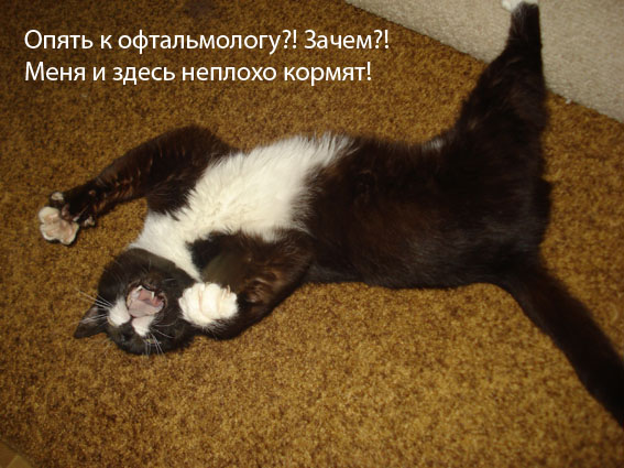 Лизуня держалась на приеме как всегда молодцом, офтальмлолг Надежда Геннадьевна называет ее героической кошкой. :)