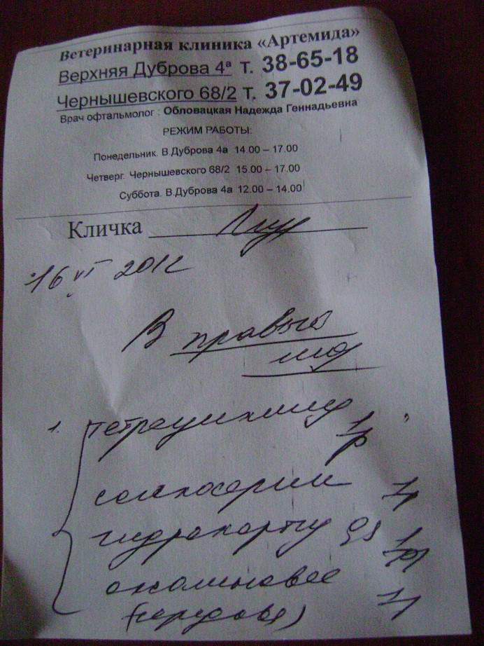 Офтальмолог отпустила нас на две недели, сказала,что все хорошо в обоих глазках и мы МОЛОДЦЫ! Для профилактики мази пока будем закладывать в правый глаз и капать в оба глаза одно из средств: фоспренил,максидин или интерферон, что найдем в аптеке.