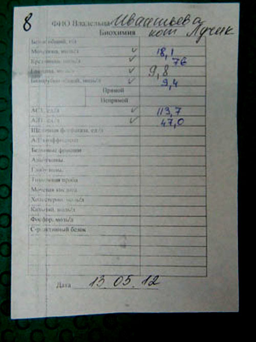 По анализам - хуже, чем были (если предыдущие вообща те анализы были Лучика), а сахар очень просила сделать анализ именно крови (биохимия). Но его лаборант не сделал, решив, что глюкометром уже делали утром в клинике и это достаточно !!!