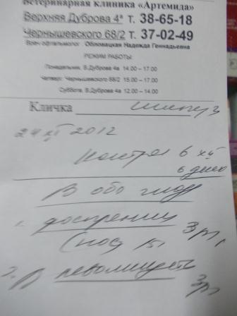 Фин отчет по котенку (назвали Шипучка) на 24.11.12г.