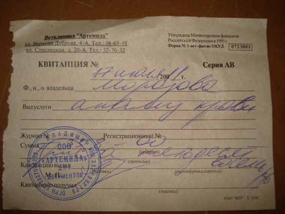По затратам: клиника, анализы - 358руб.