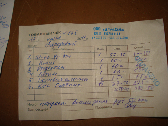 препараты - 480,50 руб.