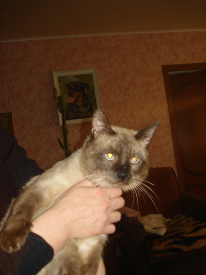 И еще, когда у Лены, у кошки рыжей, была течка, то Кеша был в готовности. Я забыла это в прошлый раз написать. Мы думали он просто глазеет на нее, а подняли Кешу и увидели.