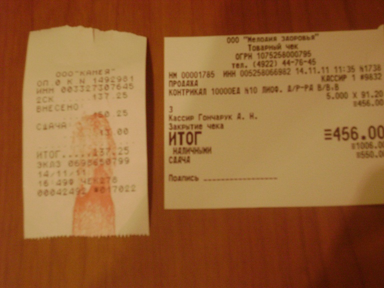 Чеки за лекарства . Контрикал 5 ампул для Марты .