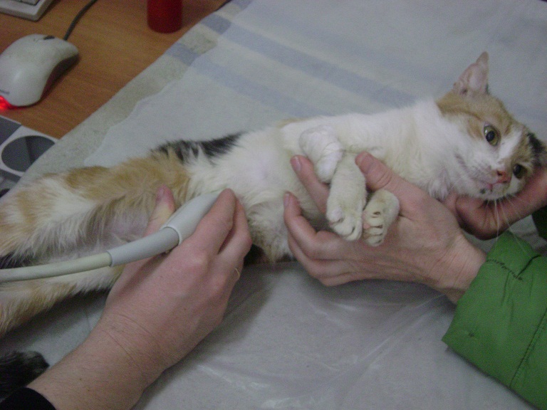Фото Мишель в клинике. Вела себя ОЧЕНЬ хорошо, на УЗИ даже урчала.