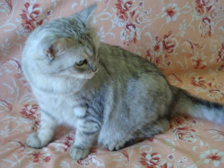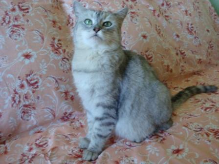 Интеллигентная кошечка породы скоттиш страйт (возможно фенотип),стерилизована, 3 годика, к лоточку обучена.