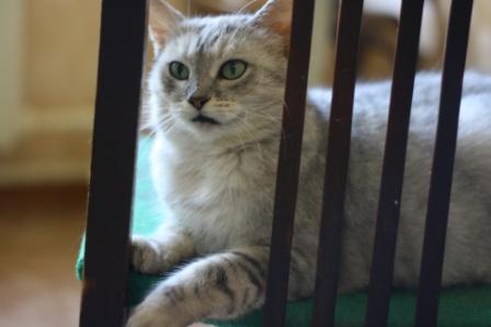 Дашка - кошка благородных кровей. В свое время она засиделась в приюте, т.к. сначала была с котятами, потом будучи кормящей мамой еще на улице опять стала беременной и откормив котят первых, родила вторых в приюте (на клетке так было и написано "Непорочное зачатие" :) ). Опять ждали. Лечили. Потом денег на стерилизацию не было. Когда появились - простерилизовали. А так... ее бы обязательно забрали еще зимой в акцию-раздачу.