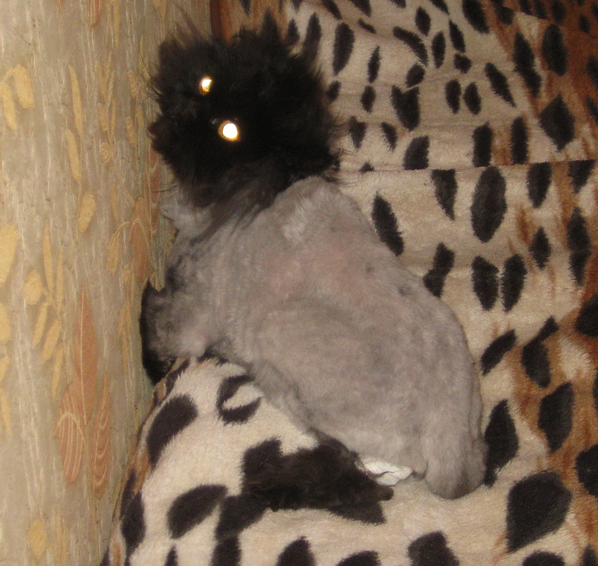 удалось постричь, под страшными колтунами в некоторых местах обнаружены язвы