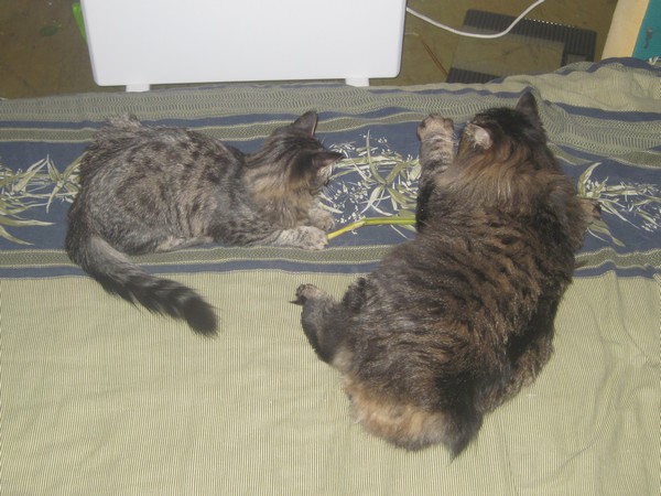 Вот как-то так! Теперь она мамочка, Крис ее все-таки рассосал, молоко появилось. Теперь он играет с Левой, а спит с Масяней :)