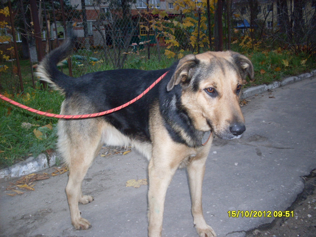 это мальчик не старше 3*х лет. До весны этого года был явно домашним. Не агресивный. очень любит детей, Хорошо ходит на поводке и спокойно сидит в будке. Вообще очень замечательный пес , очень преданный и ему прсто необходим хозяин. У меня сейчас есть объявления на Сландо и Авито
