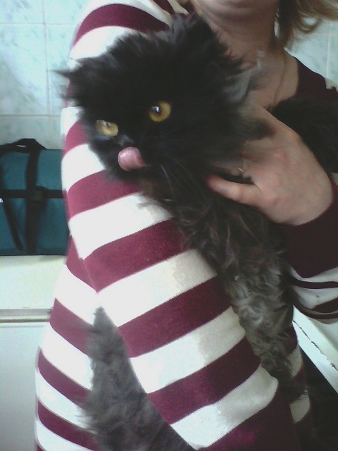 Татьяна, вам бы её сразу постричь..... шерсть вся свалявшаясь как валенок((( Зато глазааааааа - мечта! на чёрной морде рыжие глаза по 5 рублей