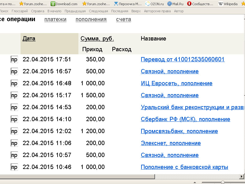 22.04.2015 17:51 350,00 Перевод от 410012535060601