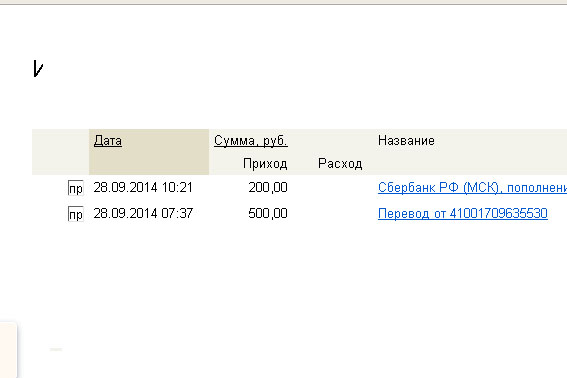 30.09.2014 23:11 300,00 Сбербанк РФ (МСК), пополнение
