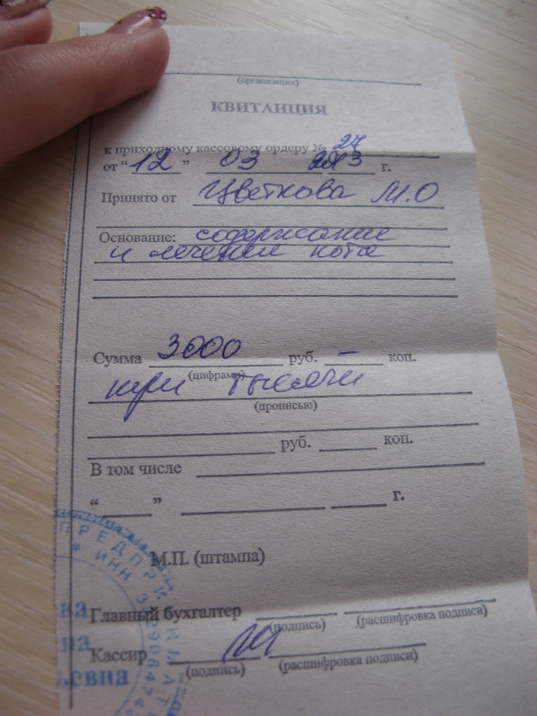 У меня возникла критическая ситуация... Я кормлю молоденькую кошечку около дома.. Как вы знаете сейчас март, и у кошек особая активность. Я испугалась, что она принесет котят, и мы решили ее стерилизовать.. Я взяла на ее стерилизацию и стационар часть денег.. Но в попыхах совсем забыла попросить квитанцию в Валенте. Мы привезли ее в субботу, и за стерилизацию и содержание взяли 1200 рублей. Есть только квитанция на стационаре у ЕВ. Спасибо всем большое..