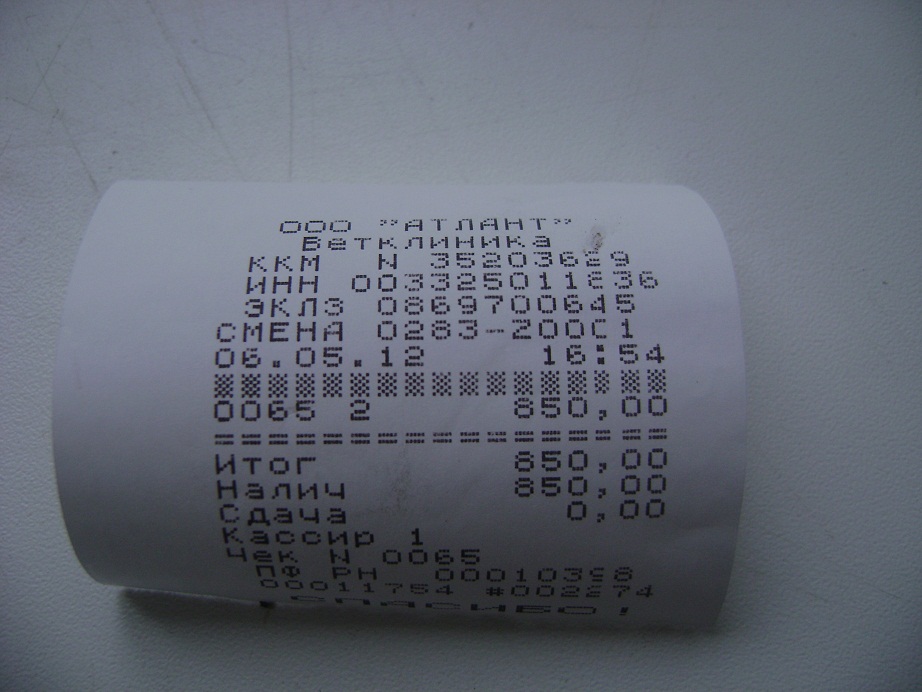 Чеки за стерилизацию, только второй чек у меня плохо получился, совсем ничего не видно. По нему сегодня платила. Кошек будут завтра стерилизовать, сегодня Насте некогда было.