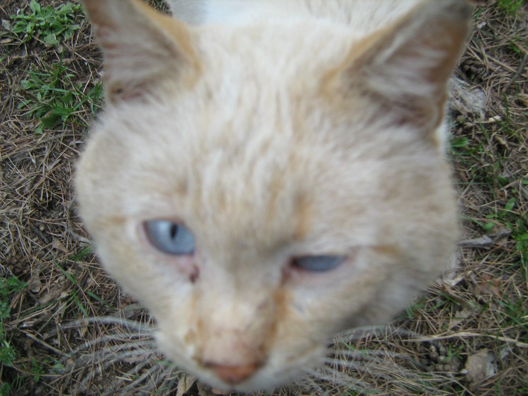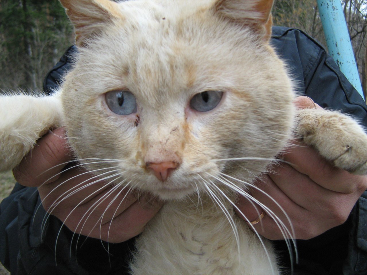 К нам во двор подкинули (или пришел откуда-то) вот такого грустного котика. Никому не нужен. Сидит постоянно на детских качелях.