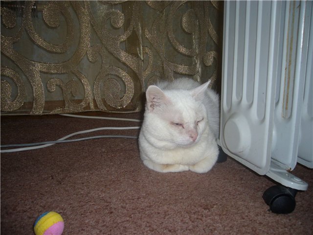 В конце февраля на сайте в одном из комментариев к фотографиии, было письмо, с сожалением, что кошечку, которую они увидели уже забрали и спрашивали нет ли еще белых. Одна кошачья вывшебелая была сдана в приют. Состоянеие совершенное не ах! Лечили как могли, но ... чего уж тут, раз нет диагностики настоящей. Кошечка можно сказать угасала, не знали что с ней. В добавок она была очень пугливая, видно горе-хозяева или жизнь на улице и ее раньше били.