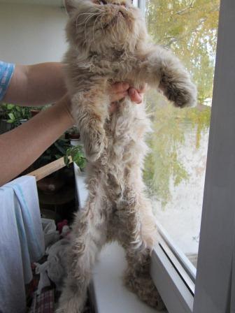 Большое спасибо всем за помощь и сочувствие! Бедный Кузенька, скелетище (и больше ничего!) шикарного перса достоин того, чтобы на старости лет есть досыта, спать в тепле и дышать нормально, а не через раз застуженными легкими.