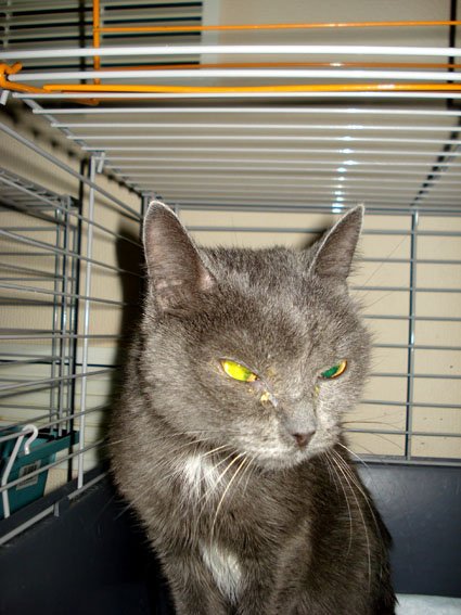 История была такая. В Атлант сдали очень красивую голубую кошку. Она сразу попала в комнату- общий вальер. Боялась всего и всех, забилась под батареи и просто скрылась из вида. Возможно сидела так долго, пока не была обнаружена Тамарой. От былой красоты ничего не осталось. Настоящий бухенвальд +вирус. Перевели в Атланте для лечения в комнату-терапию в клетку, чтобы на виду всегда была. Но улучшений не было.