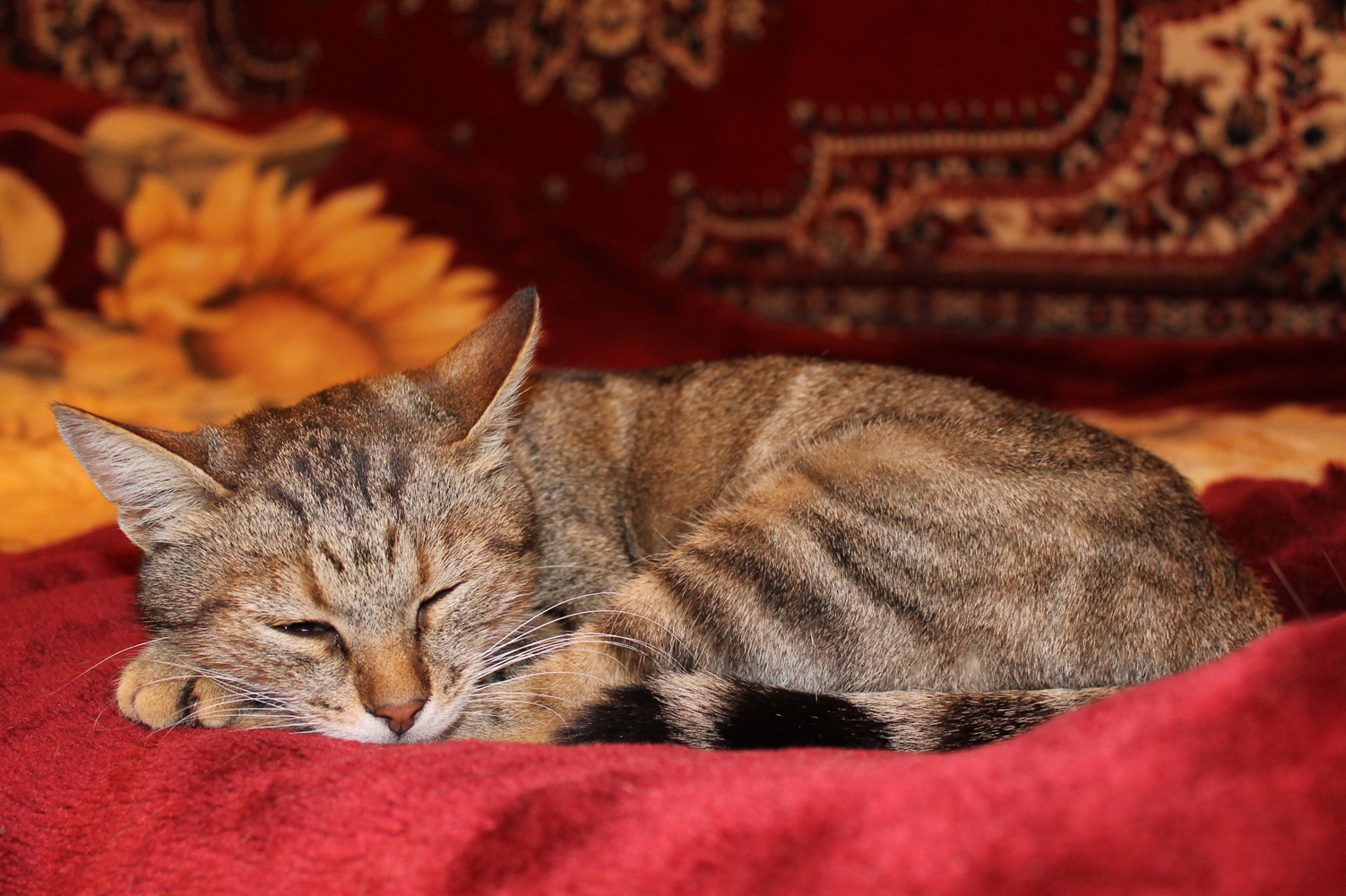 Рассказали смешную историю. Вечером они смотрели мультики, про маугли. Мусяка лежала рядом. Вдруг показывают как тигр из мульта бежит, и бежит прямо, типа из тв сейчас выпрыгнет. Кошка вся напряглась, уши задергались, спрыгнула на пол и на полусогнутых побежала из комнаты от тигра!!! :lol: