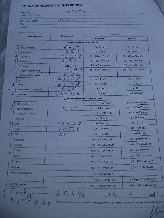 ПоМарте сделали анализы крови на общий и биохимию,УЗИ обеих почек ,печени ,мочевого пузыря,желчного пузыря, селезенки.Анализ кала на простейшие сделать не удалось,мало материала. Отвезем его ,когда поедем с Мотей на повторные анализы через 10 дней. Диагноз гепотоз,холангит,хронический холецистит,хронический пиелонифрит.