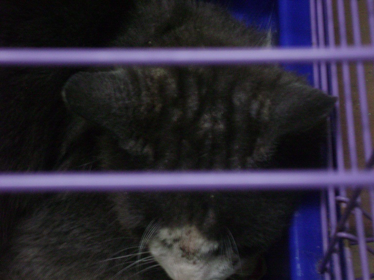 Как попался кот - это вообще чудо! С утра оставила коробку в кустах, чтоб дворники не выкинули. Иду на обед, думаю, "надо бы забрать", а потом "ладно, вечером заберу, когда темно будет =)) а то скажут, лазит тут какая-то с коробками =)))". Ну вот, выхожу из дома, пошла покормить, зову его "кис-кис", слышу тихо где-то мяукает... не пойму... иду на звук.. подхожу к коробке... а он в ней сидит!!! Да так не бывает!!! =)) Я его схватила быстрей и отнесла на балкон, насыпала еды и ушла. Вечером отвезла его к Е.З., взяли соскоб (200 р), выяснилось, что у него, нотоэндрос. И причем некоторые болячки мокли уже, загнивали. У него паражена вся шея и мордочка уже (на улице не видно было, что все так плохо). В общем, если бы он не попался и мы бы его не поймали, он бы погиб. Е.З. сказала, что кот попал на 20 дней точно, потому что нужно делать 3 укола с интервалом в 7 дней, чтоб убить эту заразу + мыть пораженные участки и мазать лекарством. Вот.