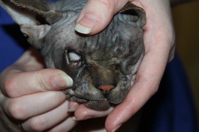 Выставляя фото этого котенка в наших группах, многие люди даже не трудились читать объявление, думая, что он просто зажмурил глазки. Увидев породную мордаху на фото, от горожан были возгласы: «Как забрать эту прелесть?!» И пропадали сразу, как только мы просили для начала прочитать текст…