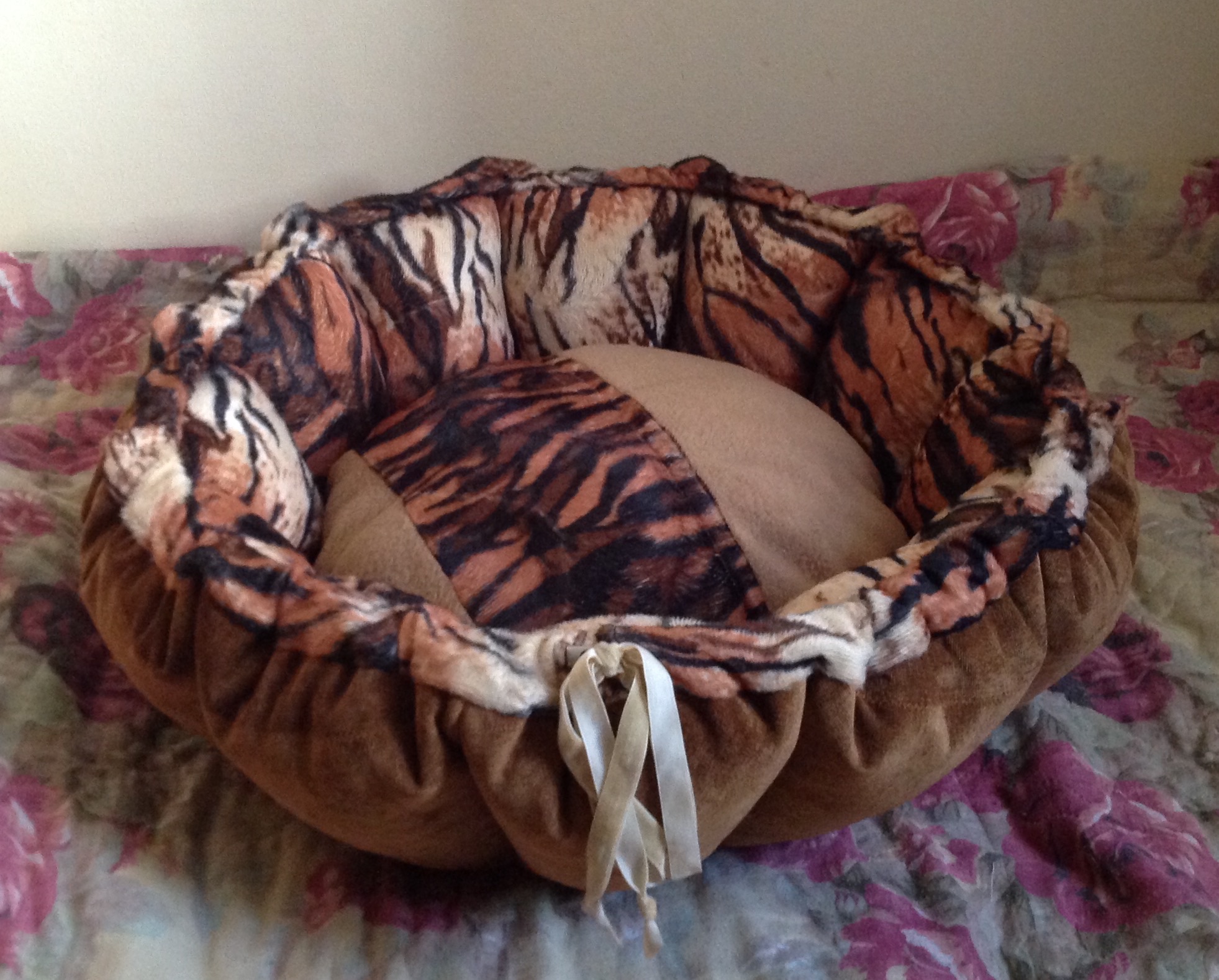 Вот готова котокорзиночка из последнего лоскута тигровой расцветки.