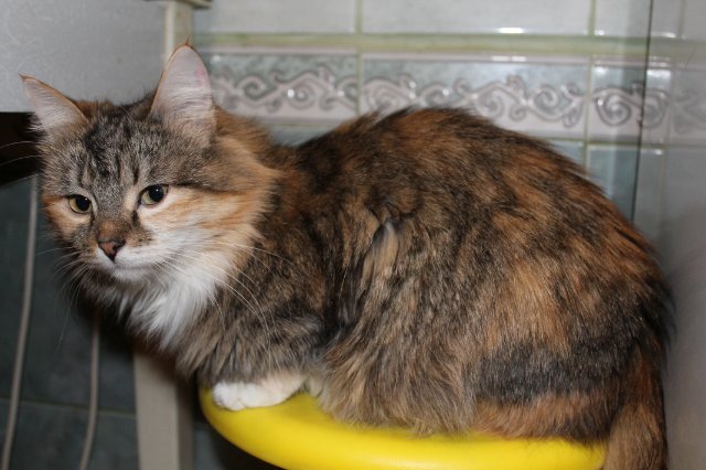Ася, 7 лет, стерилизована. Лучше в квартиру, так как может вернуться обратно к Татьяне Ан. Уже был случай. В подъезде у Т.Н.