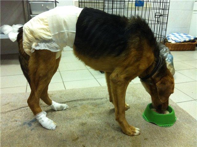"Это было что-то) приехали мы с Галей, положили планшет и открыли Маринины инструкции)) И прям по картинкам в 4 руки) и памперс сняли, и пописали на пеленку,и лапки размотали, и бинтами замотали, ботиночки одели, и погуляли,каки вытерли и тут...Тиша стал показывать характер, одну лапку размотали, вторую не дал, и давай рычать на нас вдруг, скалиться, ну мы обалдели медсестра заходит говорит подождите мол, щас успокоиться еще раз попробуйте. Отзвонили Марине, приехать пришлось в итоге, дабы доделать картину. И как тока мама появилась, ребенок стал шелковым, в 6 рук поколдовали мы хорошенько, каша рисовая с гуляшом моя, вообще у Тиши на ура пошла, ну а витаминные колбаски собачьи так вообще нас сблизили))