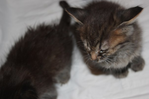 Парочка Мурзиков. Мурзик 1- уже открывает глазки, терпеливо даётся себя обработать и накормить У него уже наметился прогресс. Уже хочется общения. Мурзик 2-совсем не терпит, еду старается расплевать. Ну это и понятно-ему хуже чем первому. Плохо реагирует на обработку-раздражение появилось. Попробую поменять капли на мазь. Конечно, ему лучше,чем в подвале, но пока все равно стабильно нехорошо.Мой номер телефона 89046515469. Ирина. Возможно, кто-то захочет стать для мурзиков заботливым хозяином! :)