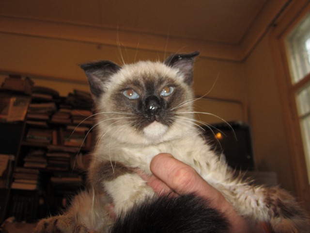 Есть еще одна, вчера ее не фоткали. Кошка Симка, окрас как у Дюймовочки, только лапы светлые. Стерилизованная. Возраст около 5 лет.