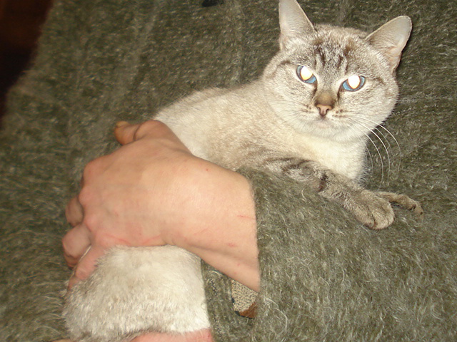 2. Кошка Ася - стерилизованная. Около 5 лет, осторожная кошка. Г.Ю. пристраевает сама, возможно поедут в Москву к Шипучке