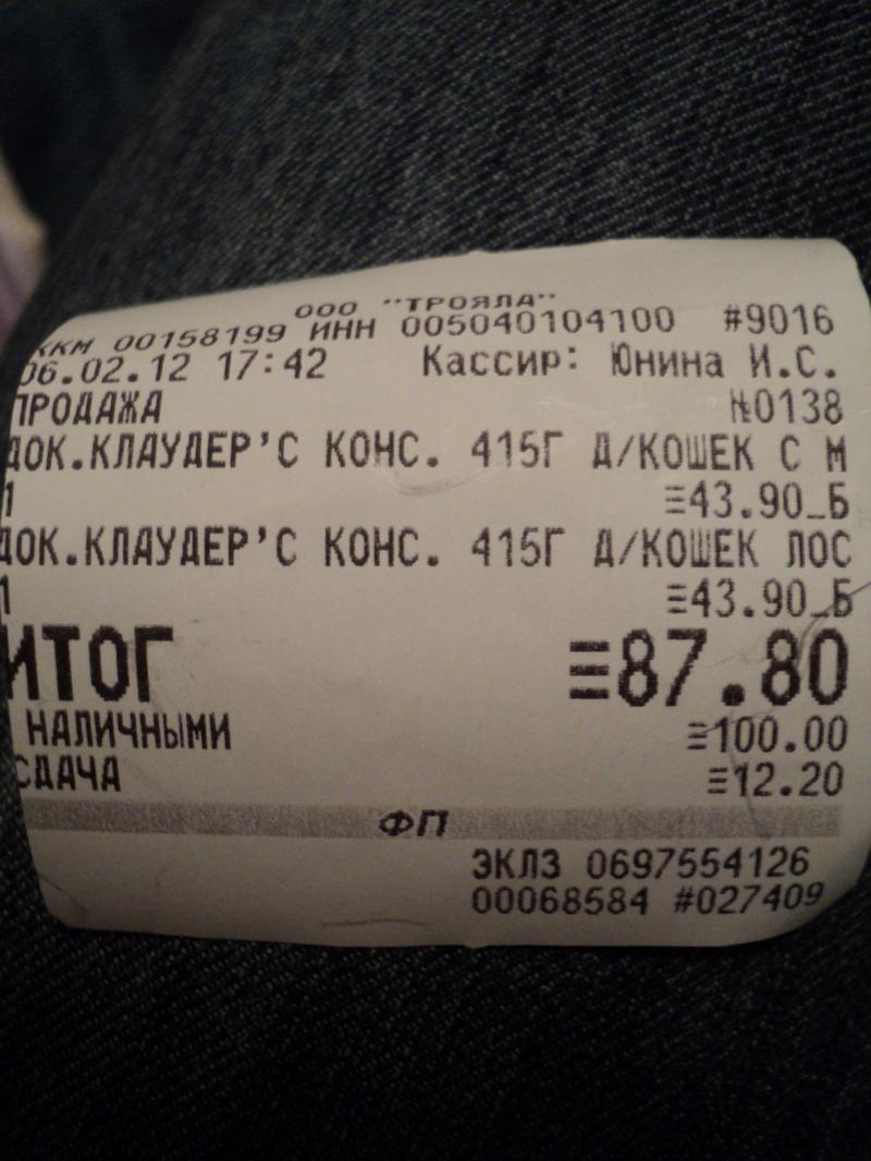 выкладываю чеки(корм и наполнитель)
