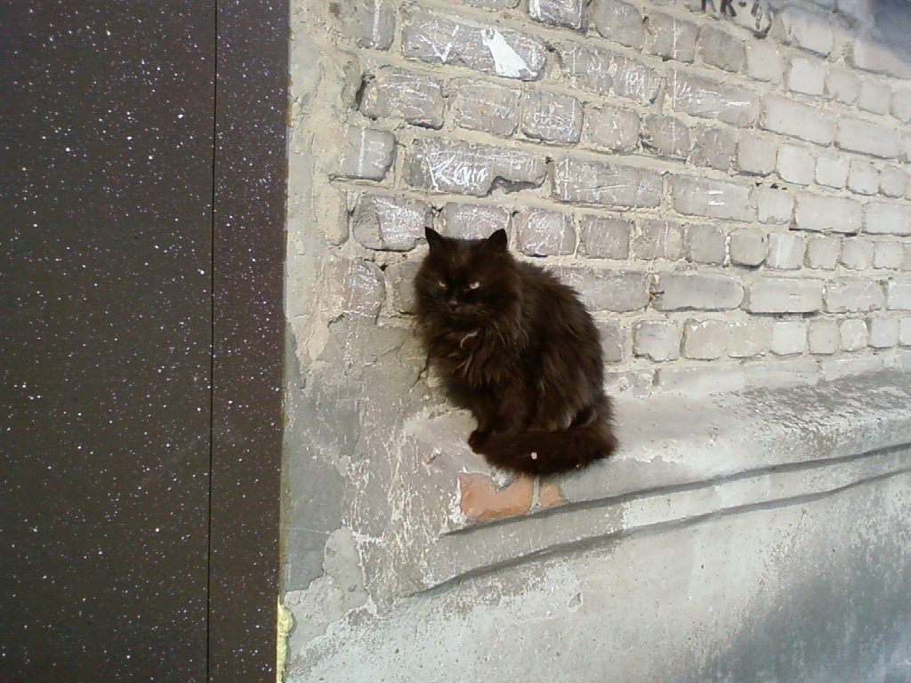 Её подкармливают около дома, но один мужик-алкаш, постоянно пинает кошку, как только увидит