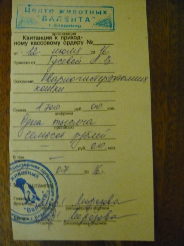 Чеки и фото кошек после стерилизации от Гали (Воробышек)