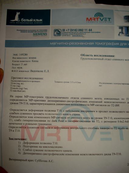 Подтвердила, как я поняла, что лапы у Кеши не восстановятся. Самое главное, чтобы моча не заставивалась.