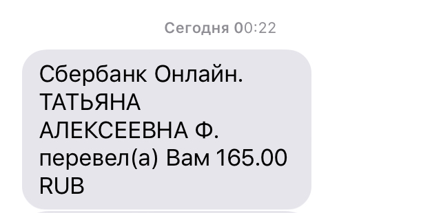 поступление на сумму 165 рублей. От Татьяны Алексеевны!!! Большое спасибо за сочувствие и помощь!!!!-