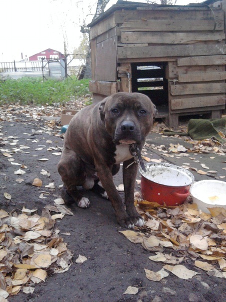 Годовалого американского стаффордширского терьера бросили ночью, в лесу, с туго надетым намордником. Подобранный пес находился в состоянии страшнейшего нервного срыва. Прошло долгих четыре месяца ежедневных занятий с кинологом, прежде чем собака снова стала доверять человеку, почувствовала радость совместного общения и превратилась в веселого озорного молодого пса.