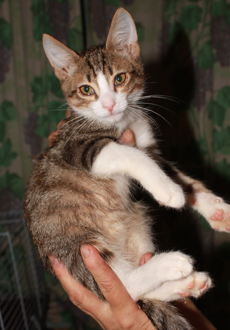 Котик Вася, ему месяцев 7-8, но он совсем маленький! Был взят с улицы диким, долго не кушал. но теперь он ласковый и ручной!