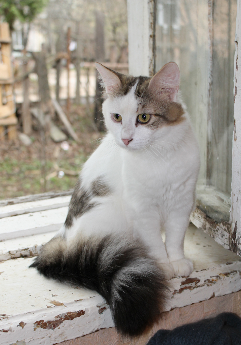 живет в подъезде. Марина ее кормит. очень красивая и ласковая, но забивает других кошек