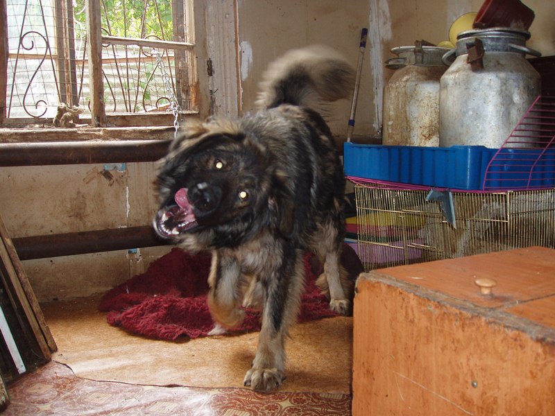 Сегодня утром с ним погуляла. Приятный мальчик. Огромный. Лохматый. Тянул как танк. Пробует охранять.