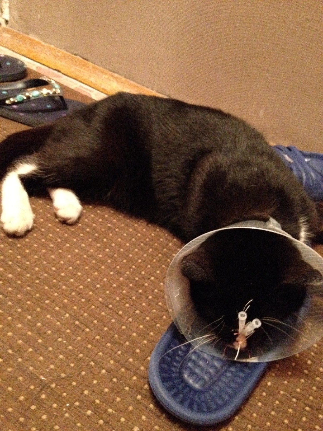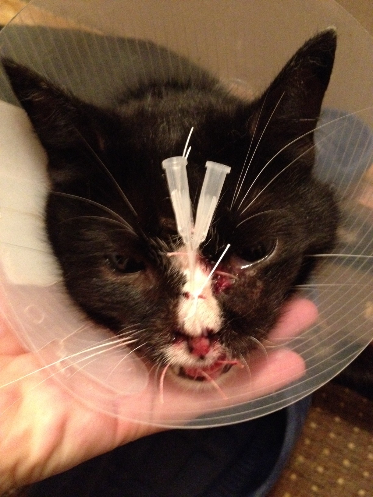 Ситуация ужасна! 24.06 сделали ещё один рентген с контрастом. Как оказалось, у Васи от ударов одно лёгкое умерло и теперь он дышит только одним. Кишечник полностью поднялся в грудную клетку.... 25.06 нам сделали операцию ещё одну на мордочке, снова все перешили, почистили. Васька очень слаб, с каждым днём замечаю, как он теряет интерес к жизни! П.А. объяснил, что с такими травмами коту категорически нельзя жить на улице, поскольку любое воспаление приведет к пневмонии и всё, жизнь котика оборвётся. Обрабатываю его ранки, а он, малышок, терпит все. Грыжу и диафрагму П.А. решил не оперировать, поскольку Вася просто не вынес бы такой наркоз. Вот и будет теперь наш котенок таким инвалидиком. Руки бы попереломать тем, кто так над ним поиздевался.... Слов у меня просто нет больше.