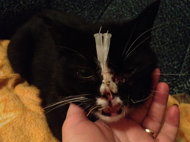 Всем привет! Прошу прощения, что так надолго пропала, просто не было возможности в инет зайти! В общем, дела у нас пока все так же, потихонечку все заживает, уже на месте, где были голые кости на носике начинает нарастать мясо, но дыра на переносице так и не затягивается, хотя П.А. говорил, что это процесс долгий. В общем, швы едем снимать 12-го числа, послушаем, что назначат, а потом в Иваново поедем (с Мартыновым А.Н. попробую созвониться в понедельник). Аппетит у нас просто отменный (ттт), уже немного играем и самоутверждаемся в обществе моего кота))))) Васюня ужасно боится всякого вида игрушек на палочке, просто убегает и прячется под кровать, а уж оттуда его не выманить ничем. Глазик обрабатываем, носик тоже, короче всё как и назначали. С дыханием проблема, тяжело дышит и спит всегда на спине, даже эспумизан мало помогает. Но в основном ситуация более-менее нормальная.)