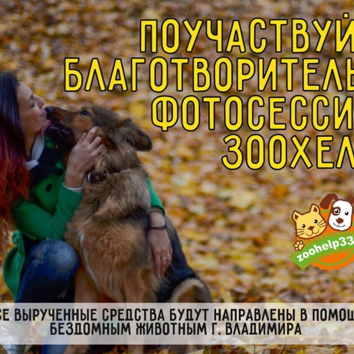 Руководитель и основатель благот.фотопроекта https://vk.com/fotoproektzoohelp33 . Мои контакты: https://vk.com/id23873178 , мобильный 89045987963 .