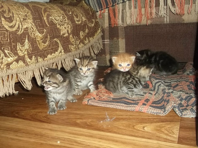 Кошку сбила машина. осталось 5 котят: 1 рыжий - мальчик, 4 серых - 1 мальчик, 3 девочки. Их подобрала девушка, выкармливала с пипетки. только недавно начали сами кушать. Ищем хороших хозяев. Тел. 89209379145
