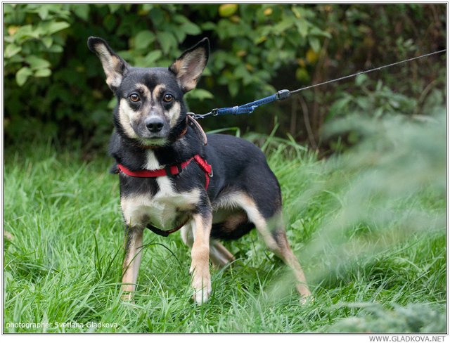 "Добрый день.Ева делает успехи.Мы надели на нее ошейник и она спокойна на нем ходит.Я перевела ее в дом,не место такой малявки в вольере.Дома за 3 дня ни ни.Гуляет 2 раза ,терпит хорошо.Единственное пока ее не очень даверяет,если начинаешь с ней общаьтся вся вгибается в пол и трясется.Возможно ее били.Потихоньку надеюсь отогреется."