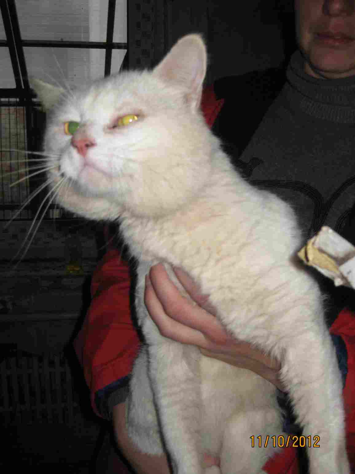 Вчера принесли белого огромного кота. Оч. красивый.